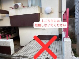 ※建物正面には自転車を停めないでください。